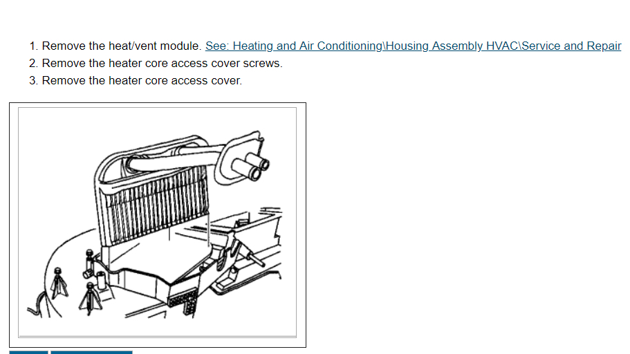 Disconnect heater hoses at core.