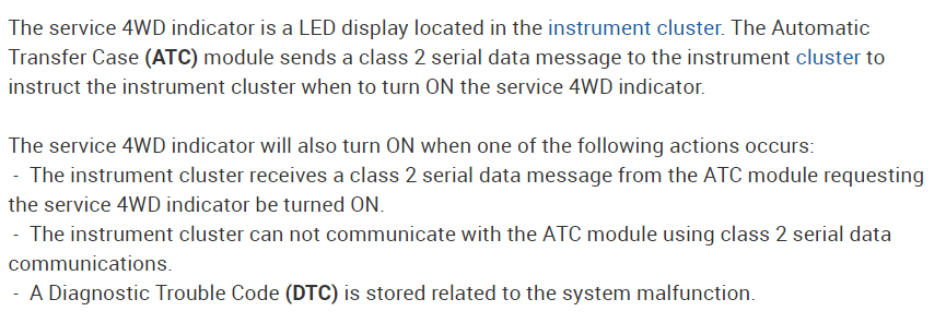 This means you have a code stored in your trucks computer that was sent from the automatic transfer case. The first thing that needs to be done is to retrieve the code or stores that are stored. If you don't have access to a scanner or code reader most auto parts stores have a tool loaner program and can rent you one. Auto parts stores like AutoZone will check codes for free. Here is a tutorial that shows what is involved on how to check codes: