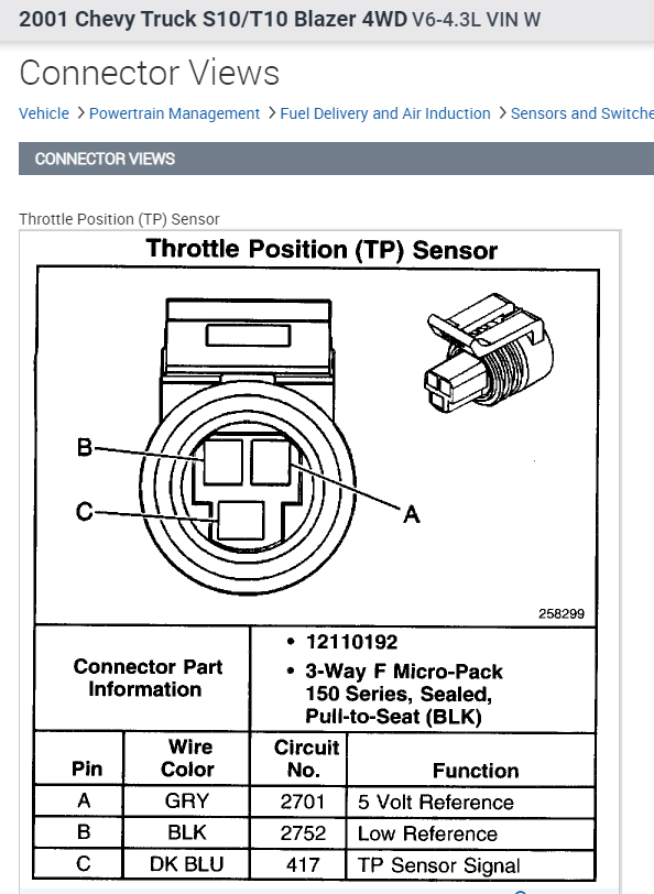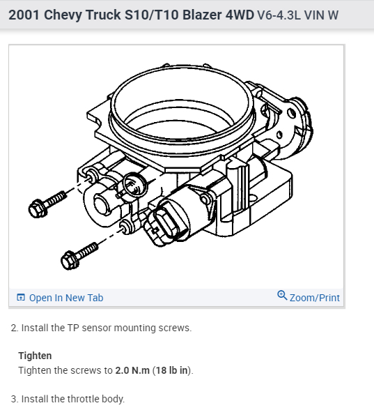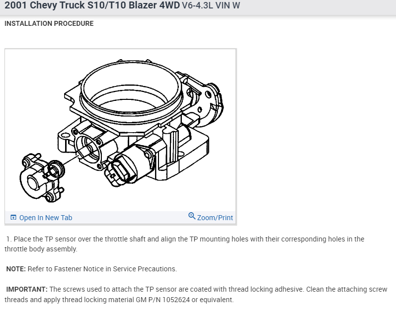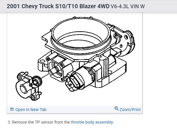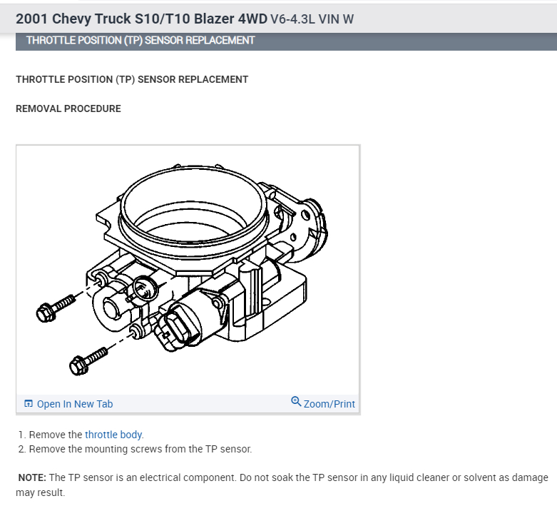 The throttle position sensor is mounted on the throttle body with 2 screws.