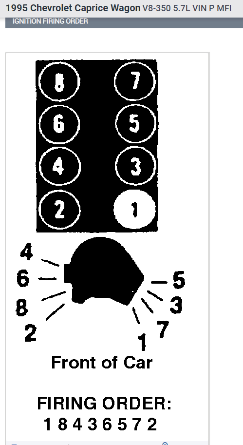 The firing order for this caprice with the 5.7L is :1 8 4 3 6 5 7 2