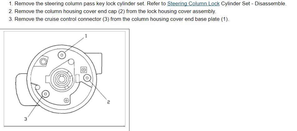 Disconnect the electrical connector (3) from the ignition lock cylinder (1).