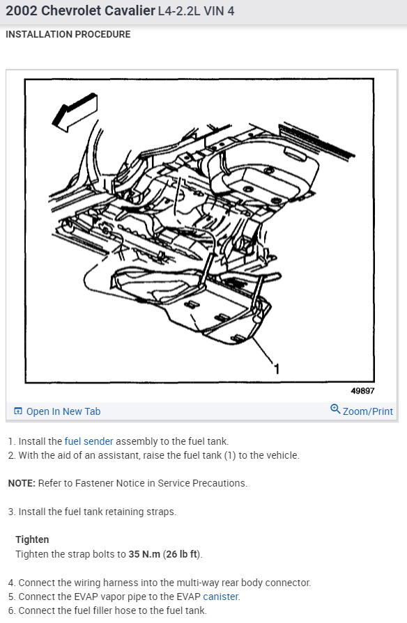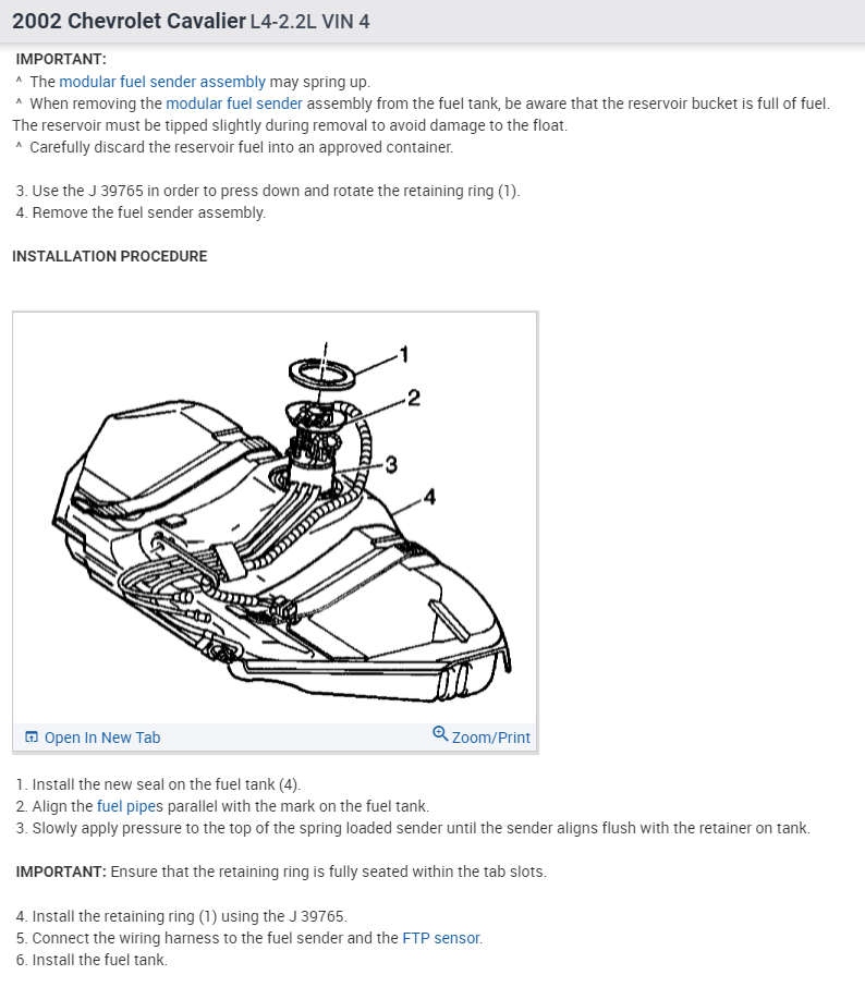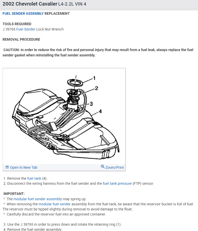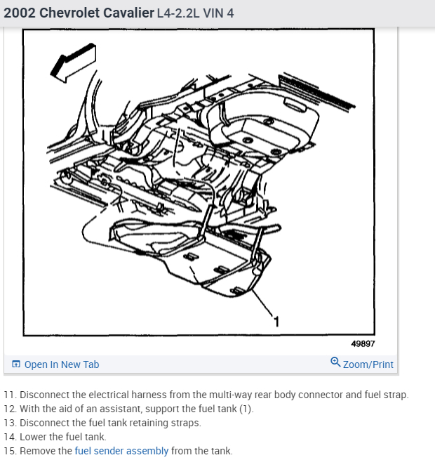 Fig. Exploded view of the fuel sender assembly mounting to the tank