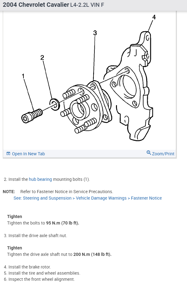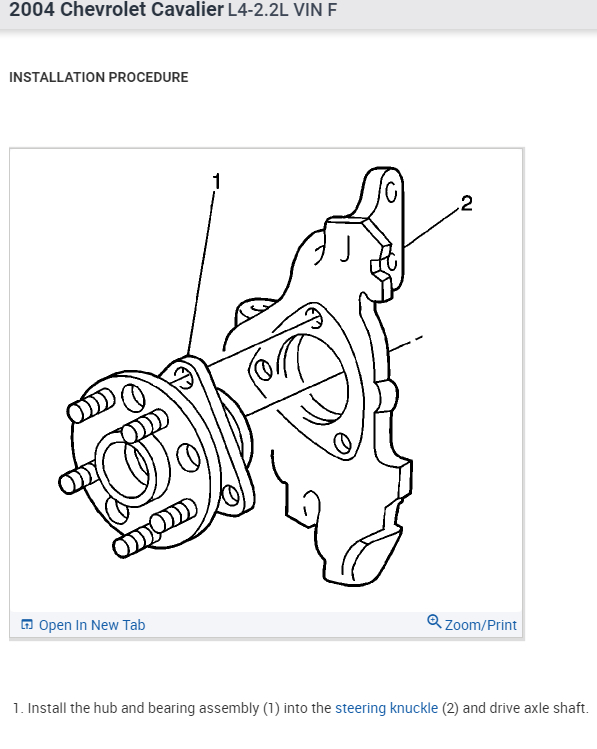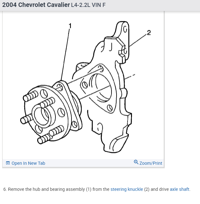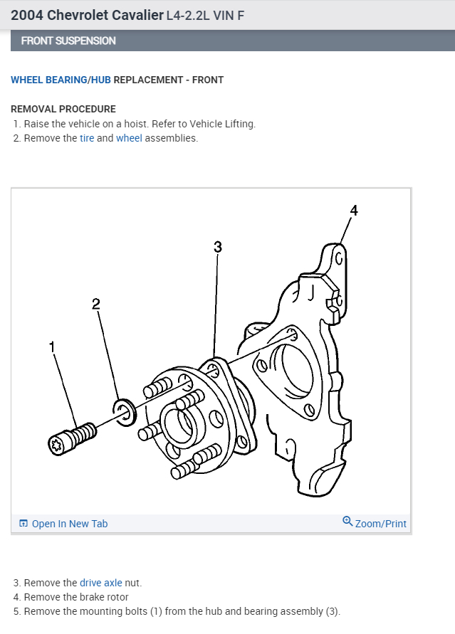 I need to replace the front wheel bearings in my 2004 Cavalier. I have purchased replacement hub/bearing assemblies. Is it necessary to remove stabilizer bar, drive axle, etc. To remove old hub/bearing or is it possible to remove old hub/bearing via center nut on spindle and remove 3 torx bolts?
