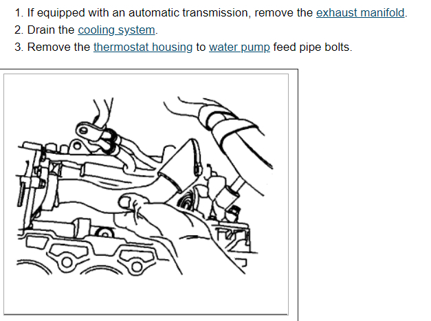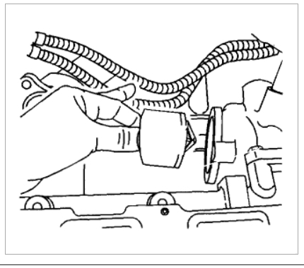 Install the thermostat housing to water pump feed pipe bolt and tighten the thermostat housing to water pump feed pipe bolt to 89 lb inches (10 Nm).