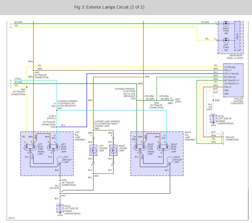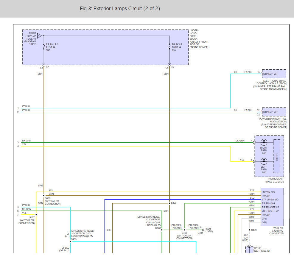 Ok. I have just tested the blue wire at the tail light. I dont know if this means anything bit im getting.08 volts when peddle is pressed and zero when depressed. Thought! Could the voltage be getting drawn elswhere? I tested the connections under the truck where the wires split off to each light assembly and I get 12 volts at the connector to the T and 12 volts after.