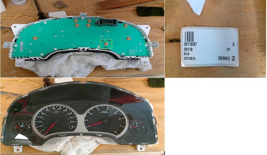 I have a 2005 Equinox and recently had the problem with the odometer bulb going out. Only the bulb needs to be replaced, not the entire cluster. The process to remove and replace the bulb is a simple one. First tilt the steering wheel out of place, pull bezel straight out carefully, and with 7mm screw head remove the four mounting screws and pull cluster out. Disconnect cluster and remove burnt out bulb by giving it a counter clockwise quarter turn. Insert new bulb and turn it clockwise quarter turn. Plug in cluster again, insert the mounting screws, replace bezel. Very simple. The bulb replacement that I used was different than the original but has the same voltage and watts, the old one had a white base with frosted cover, while the new one had a beige base and clear, which made the new light brighter but very workable. I used 39118 Bulb 20210B24 DE66K2 12V 1.5w or this one should work: