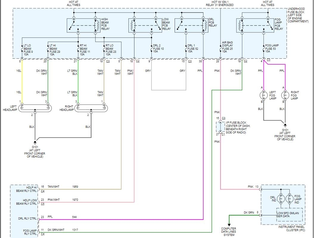 I am giving you the wiring diagram for the exterior light system which includes the headlights.