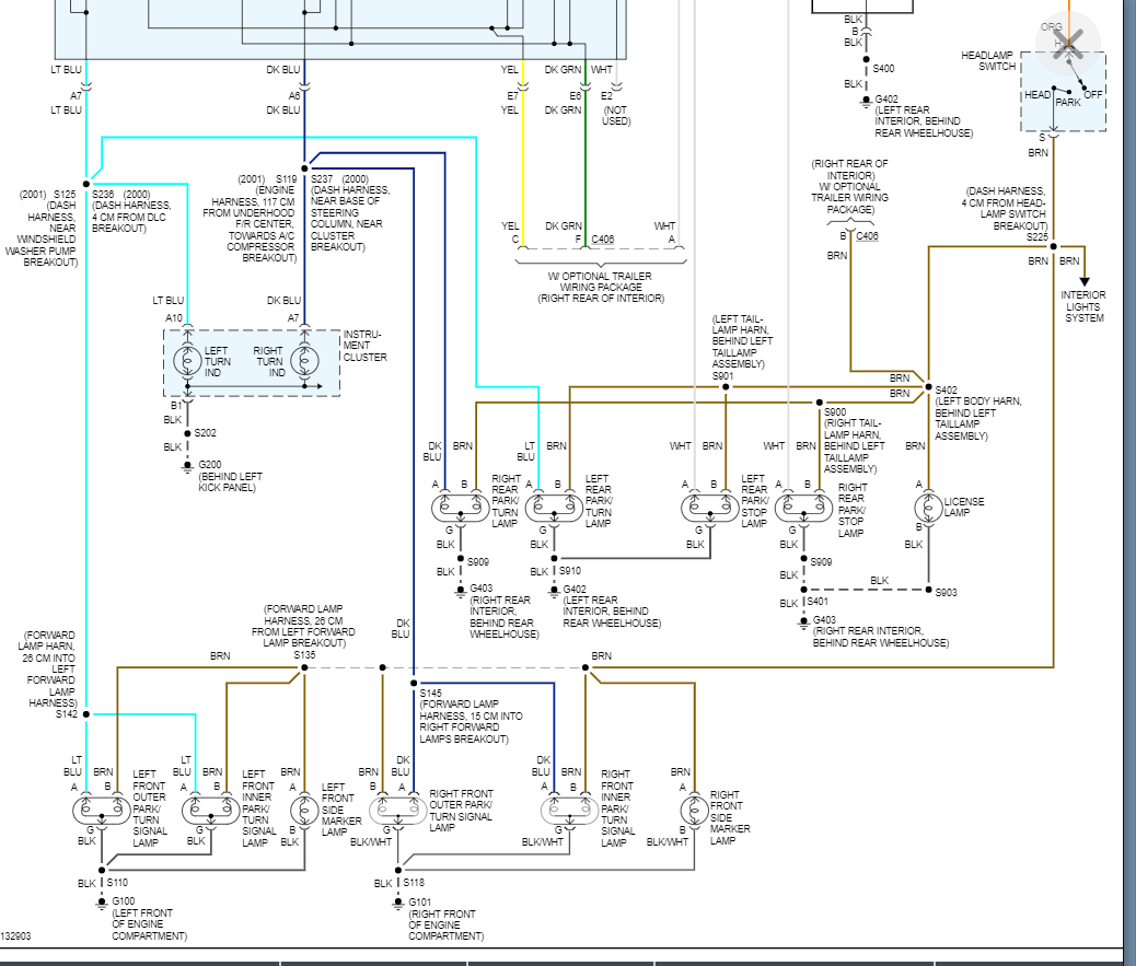 What we need to do is check for a short to ground on the turn signal circuit when the brake is depressed.