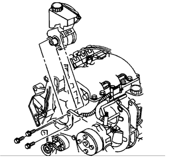 Passenger side of engine - upper left side underneath the alternator. Next to the belt