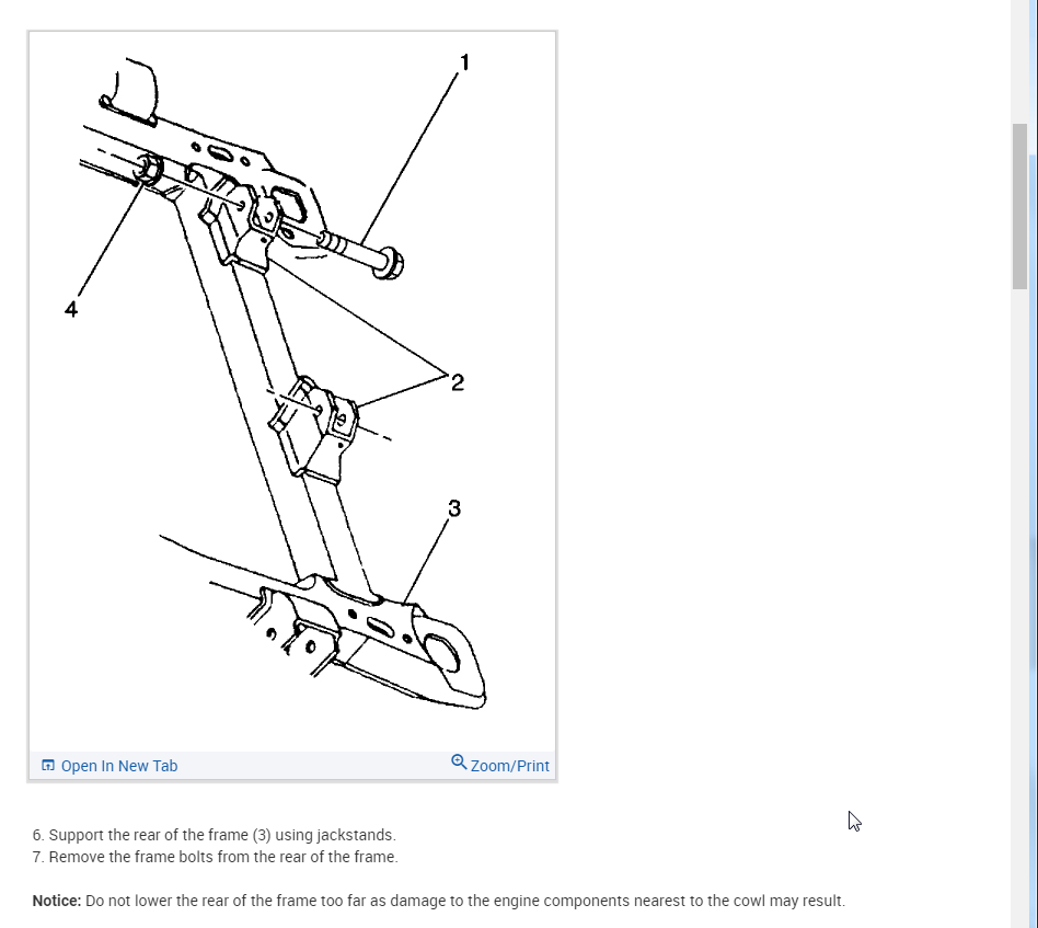Remove the power steering pressure line (1) from the clamps on the power steering gear.