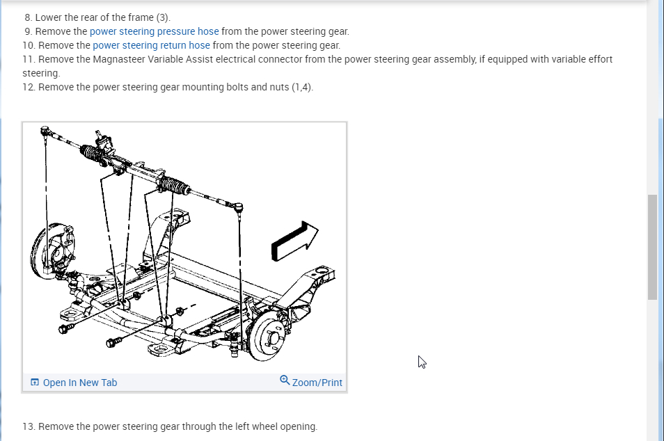 Remove the power steering line from the power steering gear . Access the line from the engine compartment, between the rocker arm cover and the front of the dash mat.