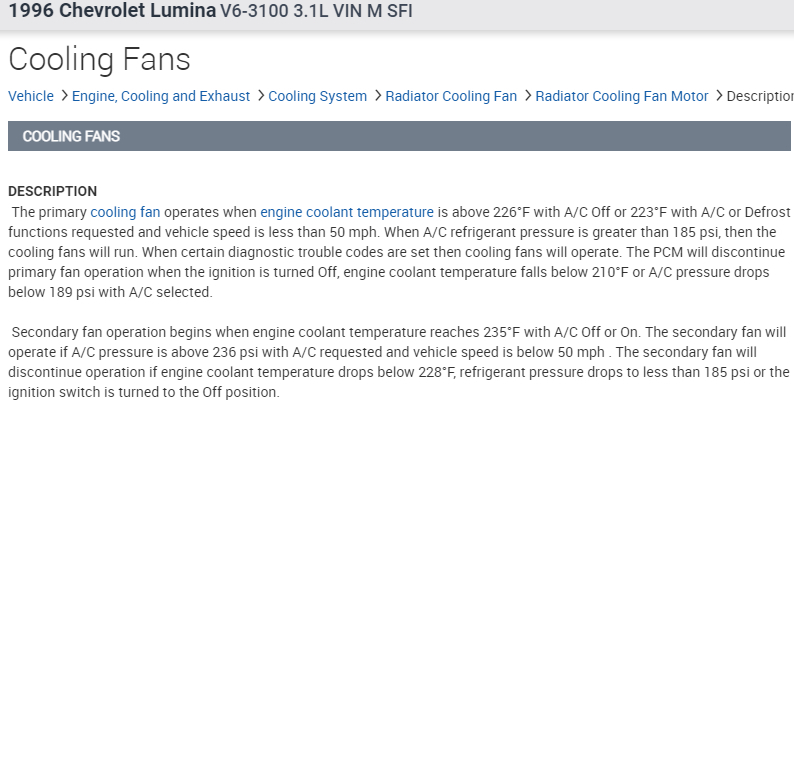 The radiator cooling fan should come on when the vehicle reaches operating temperature.