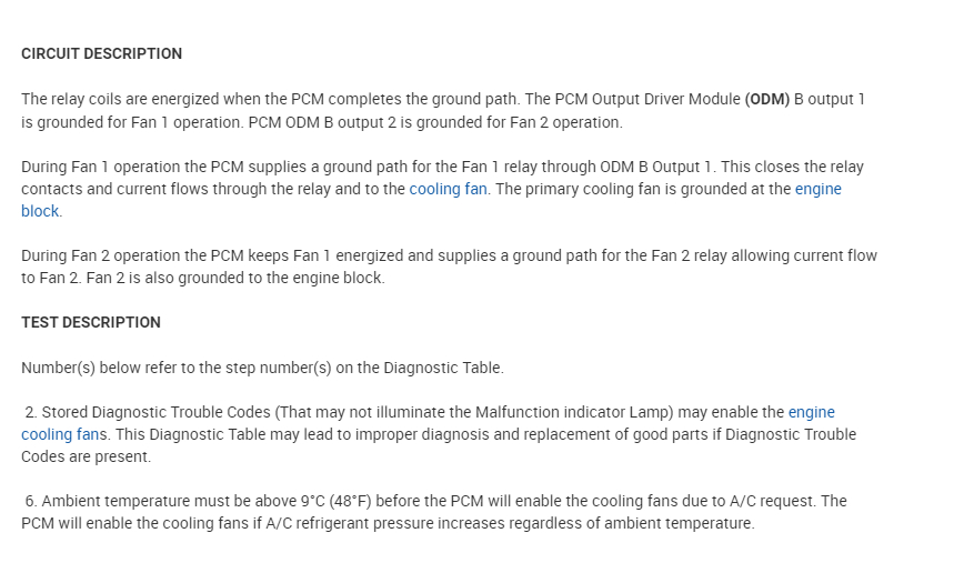 An inoperative cooling fan can be due to a bad relay, temperature sensor or a bad fan motor.