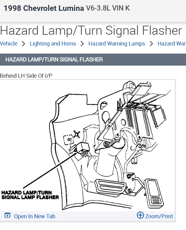 I have a 1998 Chevy Lumina with 82,000 miles, and the turn signal is not working at all. I have checked the fuse, and it is okay. Where is the turn signal flasher located.