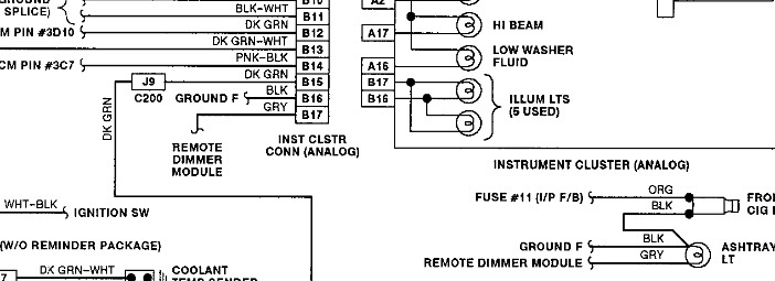 I have no illumination on dash board, cilmate control or radio when I turn on my headlights. When I turn off my head lights I get illmination for the radio.I replaced the dimmer switch and the head light switch, and fuses for these areas and still no luck. Could it be a fuseable link if so where is it located at. I noticed this problem when I blew the fuse for the radio and door locks. This car has a factory alarm system and a chip key. : :
