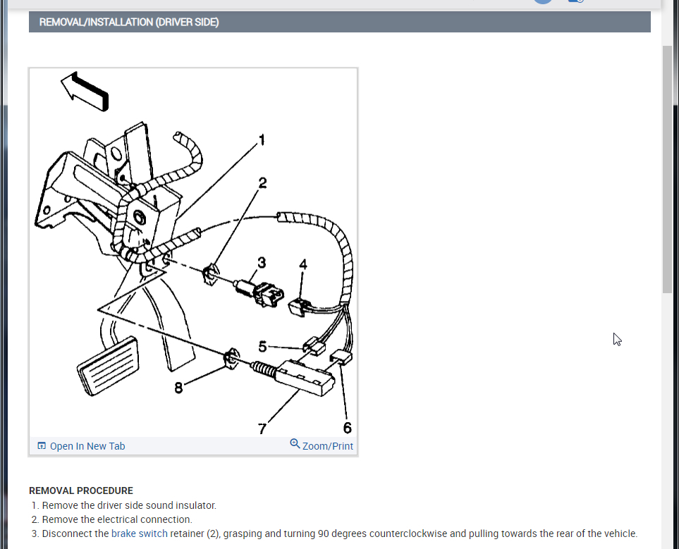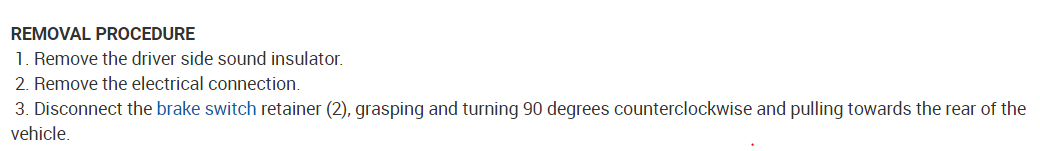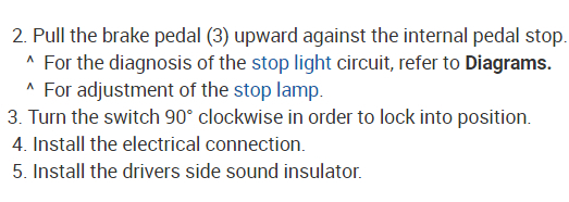 I've attached picture brake light switch replacement steps below. This includes the location for the switch located near the brake pedal on your car. Hope this helps and thanks for using 2CarPros.