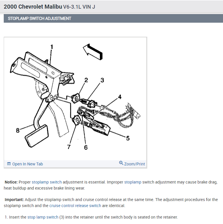 I have included the brake light switch adjustment procedure as well as replacement procedure (look below).