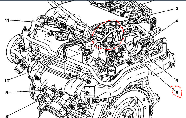 The fuel pressure regulator is located on the left side top of the engine. I've attached 2 pictures below and circled in red which is component number 6. The second picture I blew up larger for you. Hope this helps and thanks for using 2CarPros.