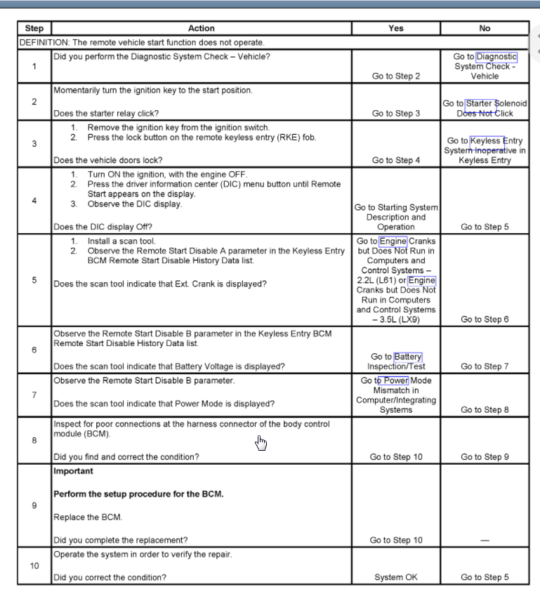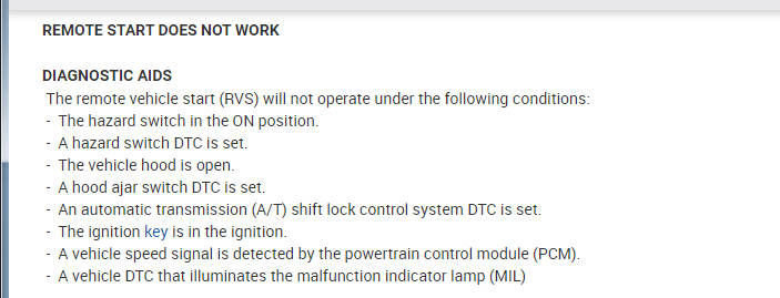 Factory remote start on 2005 Malibu. It is turned on and used to work. Now when I hit the lock button and immediately push the remote start button all the lights do is flash and the vehicle doesn't start. The keyless entry feature works fine on the vehicle. Any help is greatly appreciated.