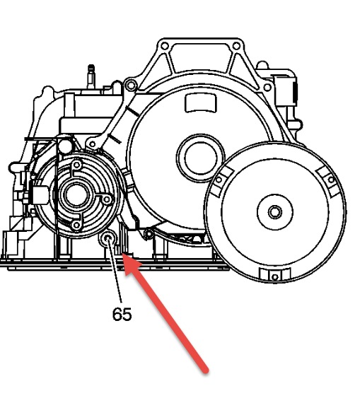 I have a nice level spot where I can pull up over a depression and slide under the car. I ran it to operating temperature, shifted through the gears slowly several times, and crawled under with my trusty drain pan. I started loosening the sight plug and fluid started dribbling out. I figured someone had added an extra quart sometime, so I let it dribble... and dribble... and dribble.