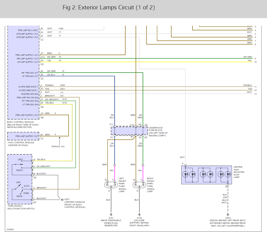 The most likely cause of this condition is high resistance due to terminal fretting corrosion in the body control module (BCM) C2 connector (specifically pins C2-18, C2-31 and C2-59).