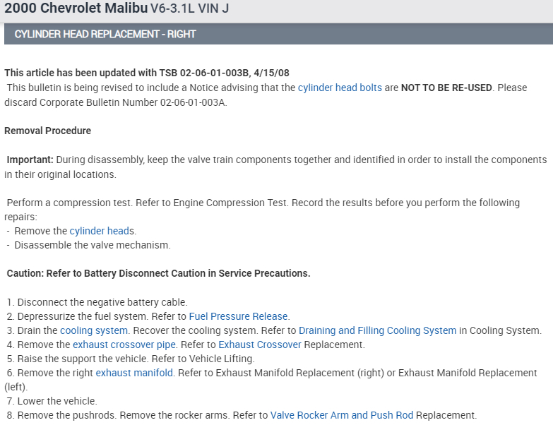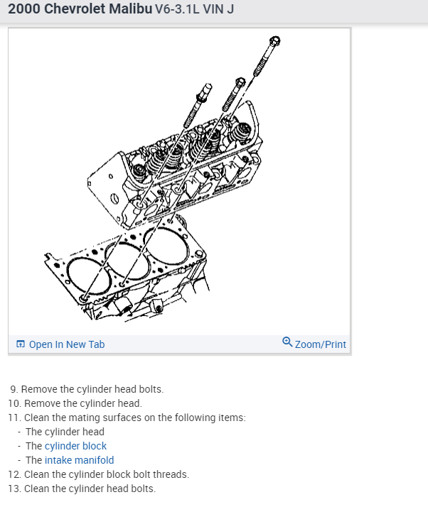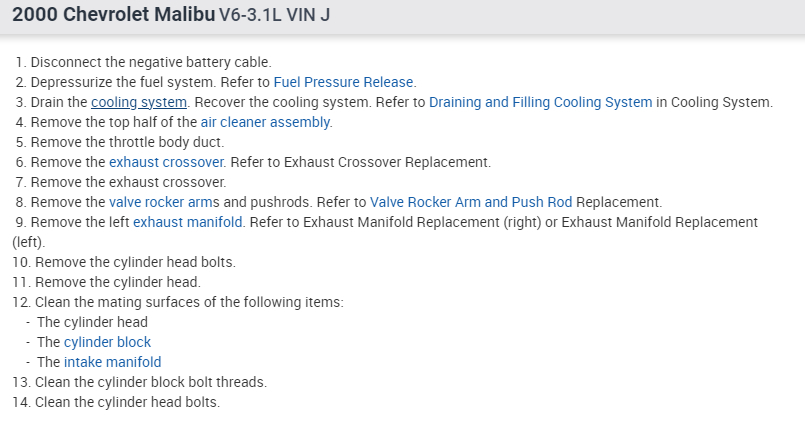 You did not include the year of the Malibu, so I have attached the head gasket replacement procedure for a 2000 model year with the 3.1L engine.