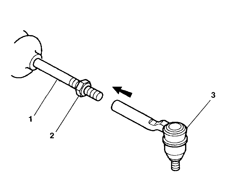 1. Install the outer tie rod assembly (3) to the inner tie rod assembly (1). Do NOT tighten the jam nut (2).