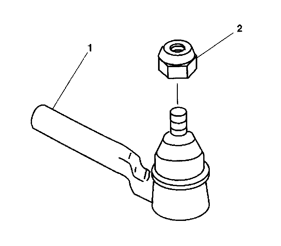 3. Install the prevailing torque nut (2) to the outer tie rod assembly (1).