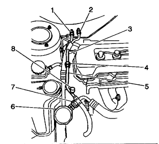 Tighten the evaporator liquid hose (5) to the evaporator liquid tube (3) union (4) to 25 N.m (19 lb ft) .