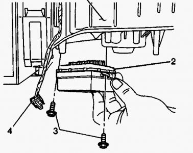 BLOWER MOTOR CONTROL PROCESSOR REPLACEMENT Removal Procedure 1. If equipped, remove the sound insulator panel. 2. Disconnect the electrical connector at the blower motor. Fig. 87: Locating Blower Motor Courtesy of GENERAL MOTORS CORP. 3. Disconnect the electrical connector (4) from the blower motor control processor (2). 4. Remove the blower motor control processor retaining screws (3) from the HVAC module (1). 5. Remove the blower motor control processor (2) from the HVAC module (1). Fig. 88: Blower Motor Control Processor Courtesy of GENERAL MOTORS CORP. Installation Procedure 1. Install the blower motor control processor (2) to the HVAC module (1). 2. Install the blower motor control processor retaining screws. Tighten the screws to 1.6 N.m (14 lb in). 3. Connect the electrical connector (4) to the blower motor control processor (2). 4. Connect the electrical connector at the blower motor. 5. If equipped, install the sound insulator panel. Page 1 of 1 3/14/2010 ...