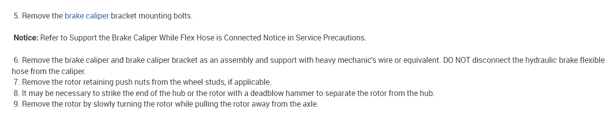 If you look at the attachments below, they provide the directions specific to your vehicle for brake pad and rotor replacement.