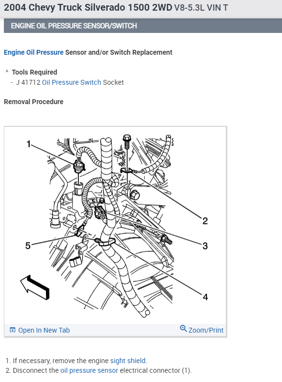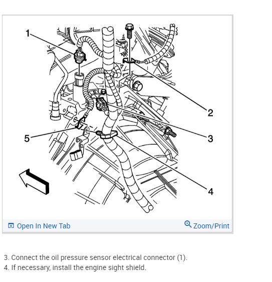 The oil pressure sensor is located on the rear center of the engine near the top (see diagram).