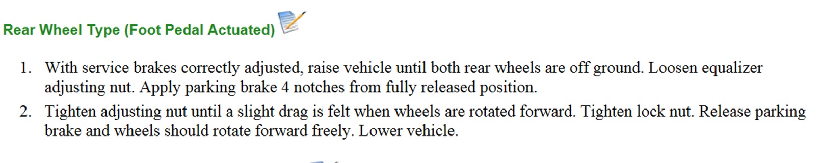 If you have drum brakes or the parking brake is a drum brake inside a rotor, the adjustment is very forgiving. The goal is to reach good pedal pressure with the pedal about halfway to the floor. The initial shoe adjustment is done by observing how much you can shift the rotor left and right as you slide it over the shoes. There's no need to have a little drag on it like you start out with on regular drum brakes because there's more than enough pedal travel to achieve good pressure. Even 1/8" of clearance is not exactly excessive. If the pedal goes further than halfway down after the shoes are adjusted, readjust the main cable to make it tighter.