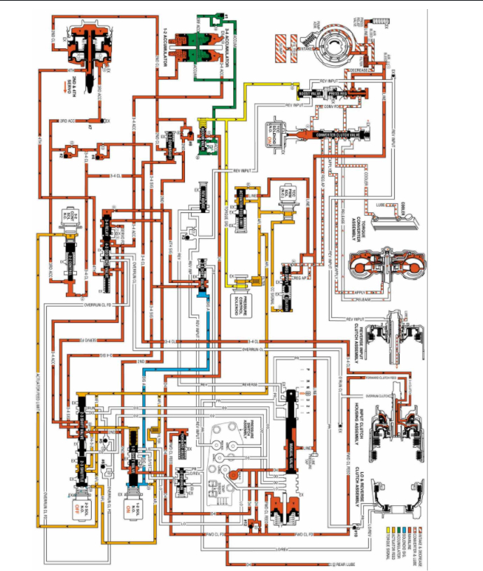 3-4 accumulator fluid routed from the 2-3 shuffle valve is blocked by both valves.