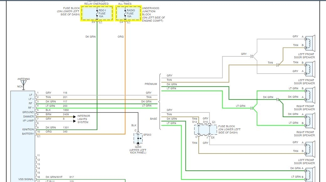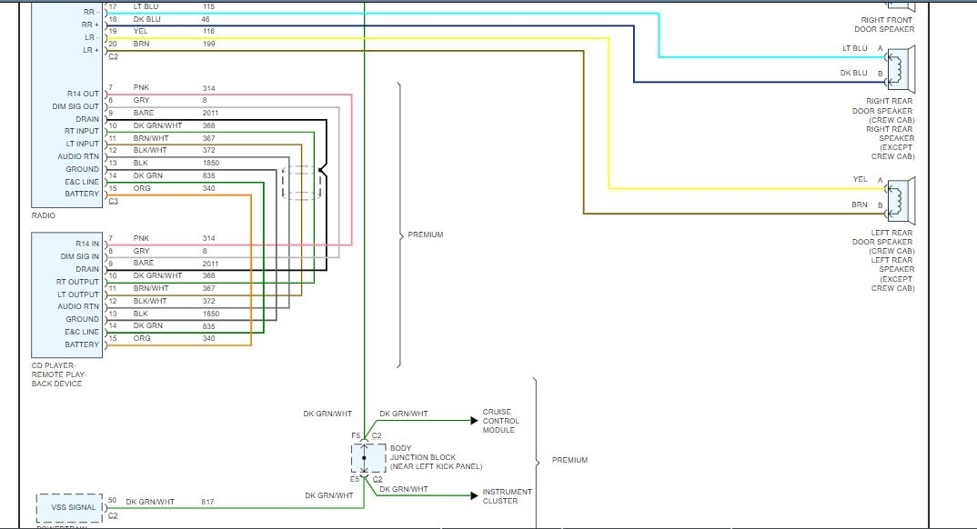 The truck is all factory. The radio is the factory head unit along with the factory speakers and wiring etc. The radio always powers on so it shows the clock which is right but it always goes back to station 98.1 and it loses any of the presets I just set every single time I shut off the truck and start it again regardless if there will be any sound. Sometimes the radio would work and sometimes it wouldn't, it was anyone's guess, but every time when the radio would produce sound it only comes out of the one passenger door speaker. I can understand if the driver side door speaker is blown or messed up from the rain but there are little speakers (in the cab panel on both sides where the back windows would be if it were a four-door) that I don't see how they could be messed up so i'm not sure why i'm only getting sound out of the one speaker. I finally pulled the driver side door panel off and found that someone had cut the wires to the door lock actuator (which is broken but apparently doesn't affect my ability to open the door with the key since I do it and have no problem). I got those wires back together (and moved the little piece side to side while testing for the radio) and it made no difference with the radio-still the same thing sometimes it would work sometimes it wouldn't, nothing I did made a difference. Using a multi-meter I tested for power in those wires and the driver side door speaker wires. All seems good. So I took the door speaker out and tested it for impedance-it should be 4 ohms and it would jump around but finally settle around 3.3 ohms. I was in a rush so I didn't connect the speaker back for half the day and for that entire half a day I had radio every single time I started the truck. To test this theory-truck off, I plugged the speaker back into the door and turned the key to the on position. Nothing. Turned the truck on, so engine running. Still nothing. Shut off the truck completely, unplug speaker and turn key to on position and boom I have sound! Of course it was still only out of the one speaker in the passenger door but it proved my theory that when the driver side door speaker is plugged in the radio only works when it wants to and still only out of the one speaker in the passenger door. So I took what I know to be a good speaker and hooked it up to the driver's door, ran the same tests and got the same results so I don't understand why this is happening whether or not the speaker is good. Help? I'm so lost and tired of singing to myself.