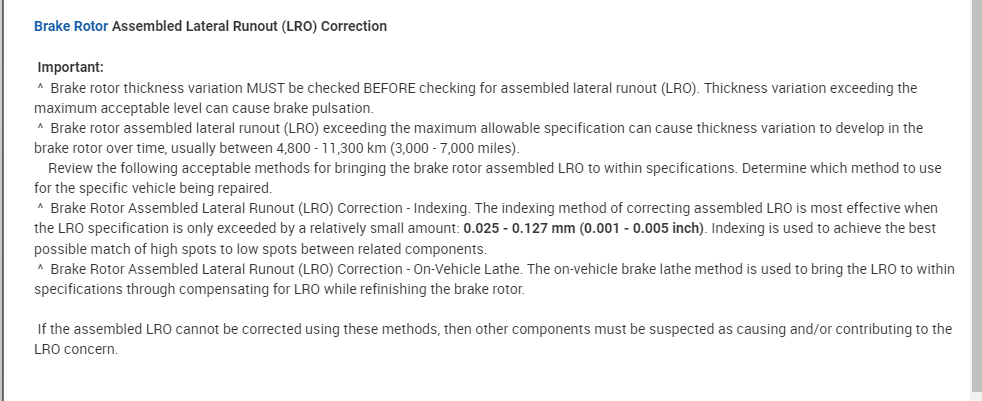 I am attaching the info below on the spec and the adjustment procedure if you find rotor runout. However, if the hub is the issue, then it will need to be replaced.