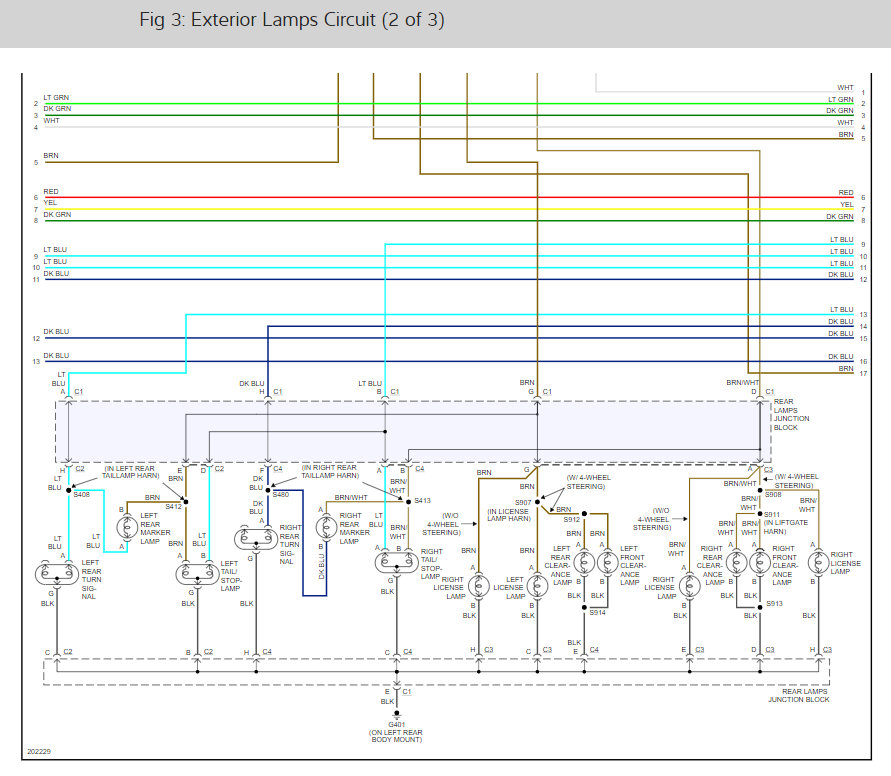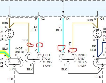 I hope that explains it and I don't confuse you, lol. It looks like the reverse bottom only uses the outer 2 wires. Ground and hot, and center wire of it is the ground connected inside it's socket, also. So reverse bottom and blinker middle are only 2 wire sockets while the top brake/tail light is a 3 wire socket. The same ground continues to be used and extended for all 3 sockets.