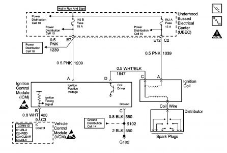 The enhanced ignition system uses the crankshaft position (CKP) sensor in order to provide a timing input to the control module. Ignition control (IC) spark timing for each cylinder is based on this input. The control module provides the ignition timing signal to the ignition control module (ICM) to control the ignition coil. Each timing pulse detected by the ICM allows it to energize the ignition coil. A large secondary ignition voltage is induced in the secondary coil by the primary coil. This high voltage is switched to the correct spark plug by the distributor.
