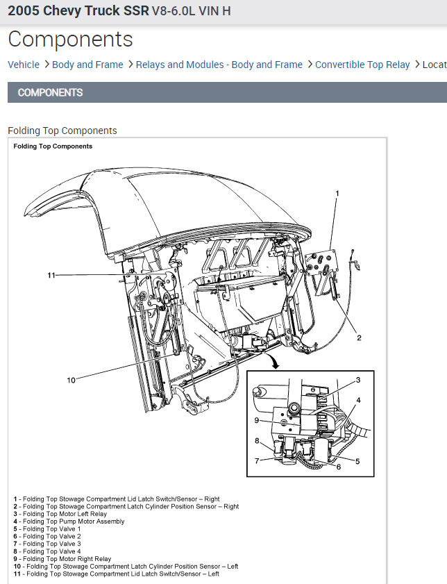 If the relay is good, then the issue is either the module for the folding top or bad top power motor.