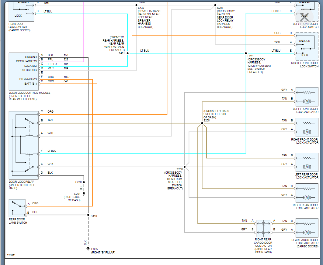 But the keyless entry system and the switches in the door panel give me the same result. A clicking sound by all of the door lock actuator solenoids but what appears to not be enough power to move the lock mechanism into the locked or unlocked position. I am getting the identical results from either using the keyless entry or the switch in the door panel. It appears that the keyless entry system transmitter is working just as well as the switch in the door panel. The test below is only for inoperative keyless entry transmitters. The problem appears to be not enough energy to move the locks. Could it be that the mechanism has become too stiff for the system and neds to be lubed? Is there a body control electrical module that could be the problem and if so where is it located? Do the door lock solenoids work on 12VDC or do they get a boost from a capacitor or something in the system that is failing to provide enough power to energize the lock solenoids? If I press the button either on the key less or the door panel switch numerous times each successive click of the locking solenoids gets weaker.
