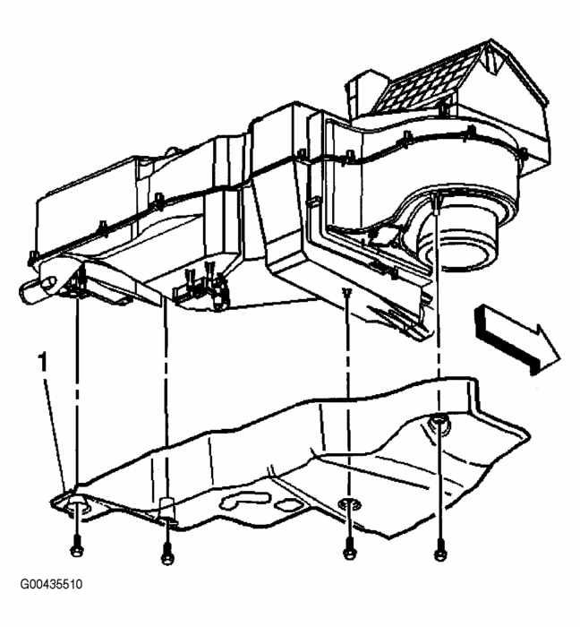 1. Locate and remove the screws holding the right side lower insulator panel as shown in the illustration. Refer to Instrument Panel Insulator Replacement in SI.