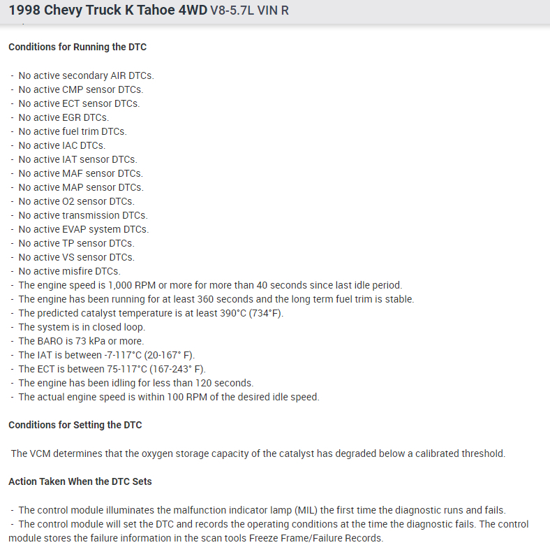 The Tahoe runs good. What the problem? Do I have to replace the catalyst comverter?