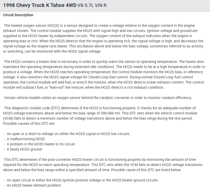 The heated oxygen sensor (HO2S) is a sensor designed to create a voltage relative to the oxygen content in the engine exhaust stream. The control module supplies the HO2S with signal high and low circuits. When there is an issue with the circuit it can trigger that code.