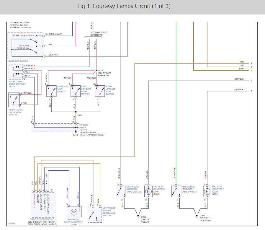 The interior dome lights and door lights do not come on when the doors open. The rear dome light does not come on when I open the rear door hatch. When I use the dimmer switch I cannot turn lights on. Dashboard cluster lights work. I can manually turn on the dome lights at the switch by the light. I checked the fuses at the dome lights and they are fine (obviously since I can manually turn the light at the dome light location