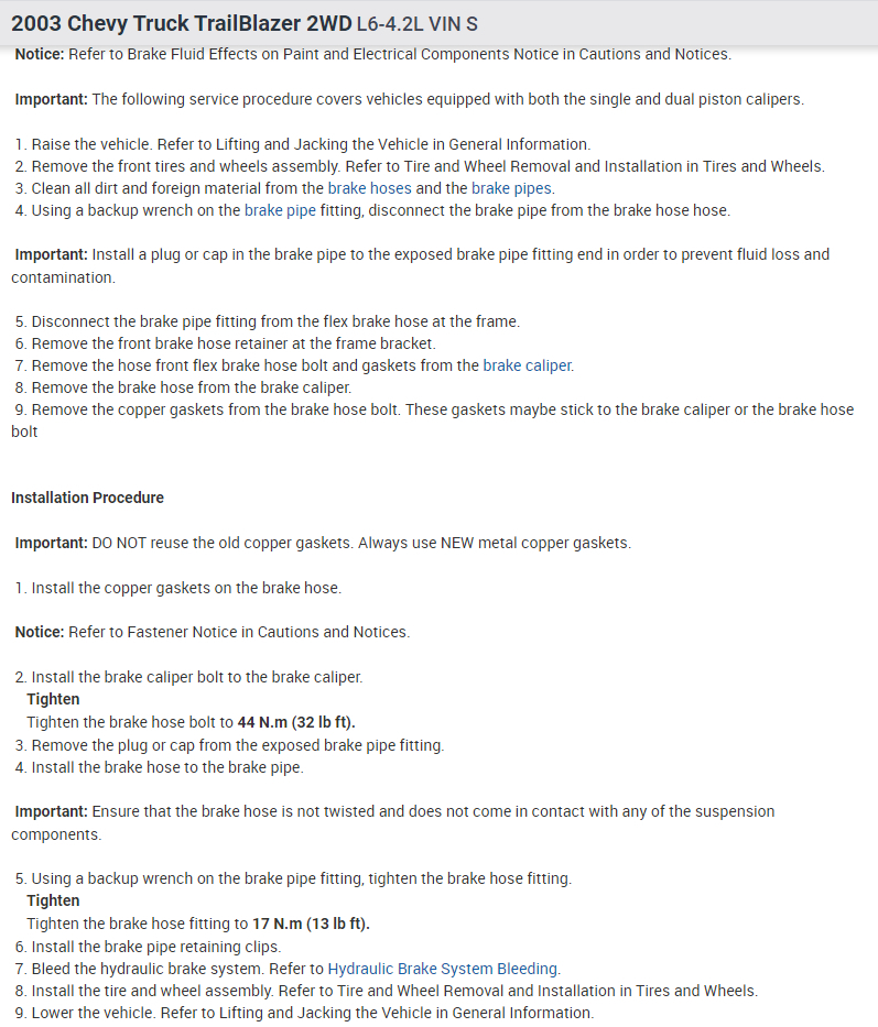 Keep in mind when you change the brake hose, you will have to change the crush washer for the hose in order to keep it from leaking.