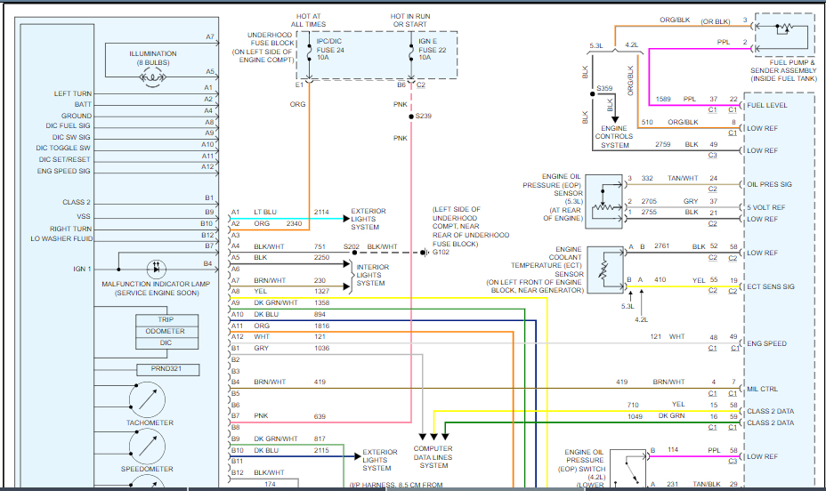 I've attached a wiring diagram of the instrument cluster below for your vehicle. I've cut the picture into 3 pieces so you could view larger. I wouldn't think it would be a wiring issue but actual gauge malfunctioning itself. Hope this helps and thanks for using 2CarPros.