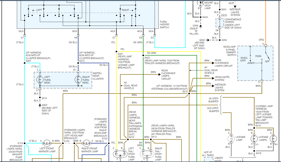 The taillight won't come on The turn signals/emergency flashers/backup lights work fine, checked the bulbs and fuses, they are fine. Headlights come on when I start the car, and cannot be shut off without shutting off the car they should have to be turned on on a 97. High/low beams are Ok Also the dashboard lights are out. I ordered and installed a new headlight switch, no change. Any ideas? Or does this need to go to the shop? Thanks
