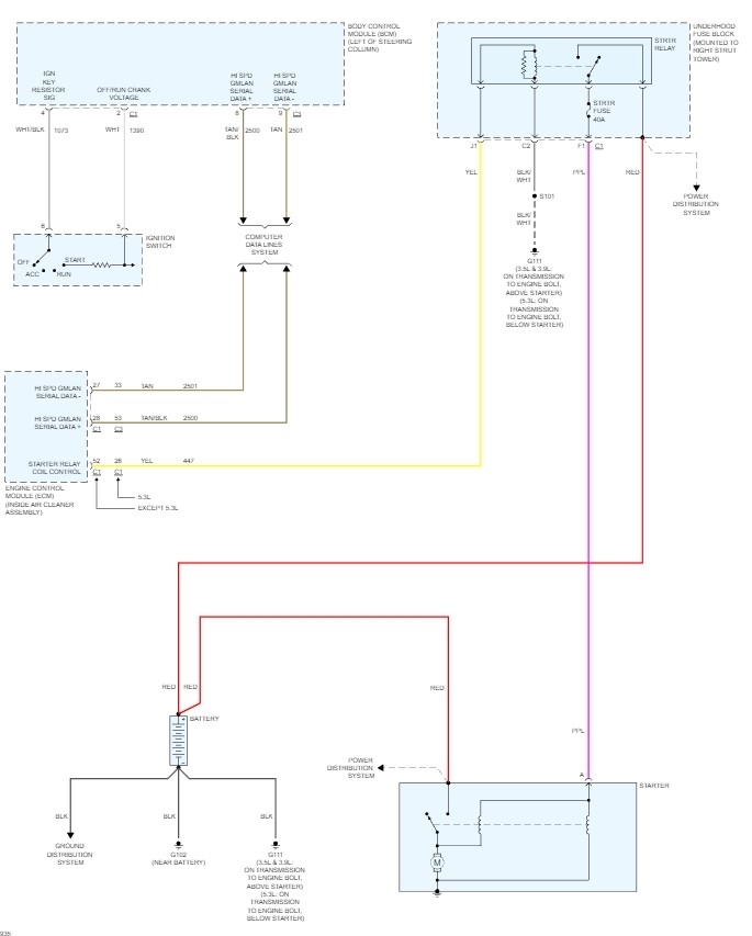 Okay, when you say it won't start, does it turn over when you use the key, or does it just crank and not start? If you use the key and it does nothing, but you have lights and other items that work, you need to test the actual starter circuit. To do that you will need a simple test light. With it connected to a good ground go to the starter motor and disconnect the purple wire that connects to the solenoid, have someone turn the key and touch the light to the purple wire's connector, does it light? I will assume it doesn't as it is the signal wire for the starter, to verify the starter is okay you can jump battery power to that terminal on the starter and the engine should turn over. Now if the starter turns when jumped but no signal on the purple wire, we need to go back to the starter relay and test from it. The starter relay is in the under-hood fuse box, have someone turn the key can you hear and feel it click? If not swap the rear window defog relay with the starter relay and try it. They are the same part, if it now starts, replace the relay. If not, we need to test the relay wiring. For that grab the test light again, with the relay out touch the test light to the connections in the box, you should find one that has power all the time, now turn the key and check again, you should now find two that have power. Make a note of the two with power. The other two pins will be tested next. Switch the test light to battery positive and touch the other two pins. One goes to the starter motor control wire and the other goes to ground. Both should light the light if the circuits are good. The one to the starter might actually turn the engine over, depends on how much current the control takes.