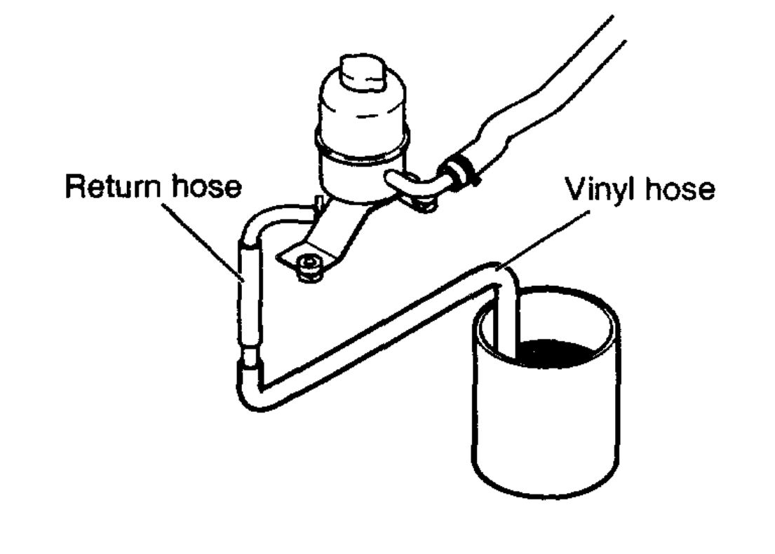 3. Connect a vinyl hose to the disconnected return hose, and drain the oil into a container.