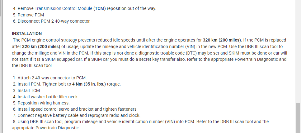 Please see below for the process from the manual on how to replace the PCM plus the connector view that we will need to check specific circuits.